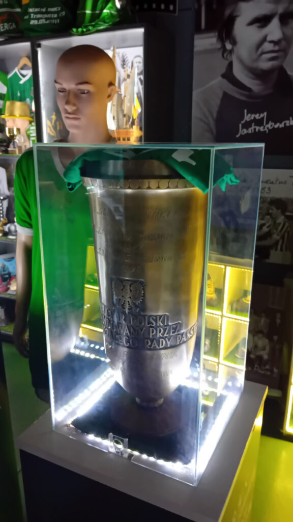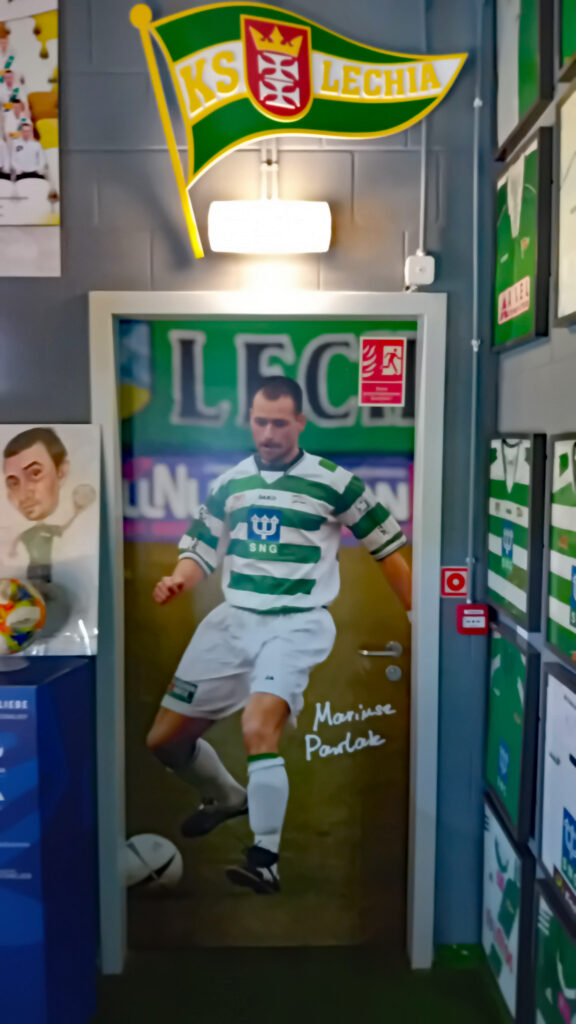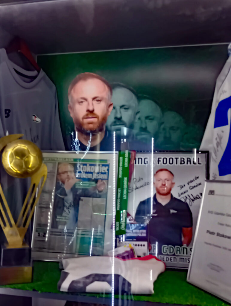 Jak już wspominamy o grodzie nad Wisłą, to kibice z naszego klubu też się nie zawiodą. Obok licznych pamiątek po byłych i obecnych piłkarzach „Lechii” można znaleźć też kilka „poloników”. Po pierwsze te dotyczące Piotra Stokowca, kiedy to były piłkarz „Czarnych Koszul” w latach 2018-2021, odnosił tam największe sukcesy w historii klubu (Puchar Polski, Superpuchar). I niech nikogo nie zdziwi tabliczka „Piotr I”, obok sławetnej marynarki w kratkę trenera. I nie tylko tej sławnej marynarki, ale to już na miejscu musicie zobaczyć…